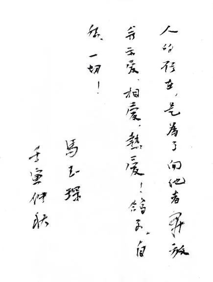 马玉琛手书寄语