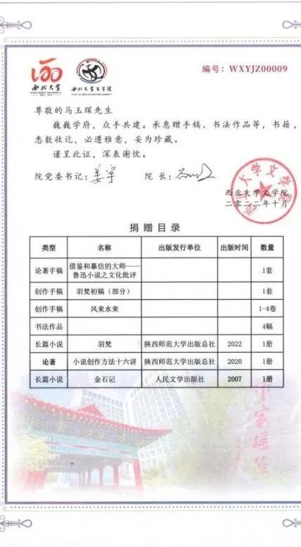 西北大学素有“作家摇篮”的美誉,涌现出一大批笔耕不辍、蜚声中外的作家、艺术家,形成了“作家群”现象,在当代文坛举足轻重、影响巨大。值此120周年校庆之际,为进一步推动校史馆建设和76net必赢官网学科发展,激发后辈学子的创作热情,赓续和发扬优秀传统,我院教师自9月以来,深入走访了文艺界诸多作家、诗人、编导等杰出校友,征集创作手稿、回忆文字、照片影像资料、签名著作、研究资料等重要实物。此次走访活动,进一步增强了校友联络,产生了广泛影响,将为学校发展、学院建设发挥重大作用,意义深远。此项活动将持续开展,分期推出,敬请关注。