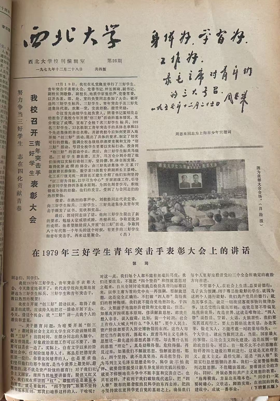 郭琦校长在1979年三好学生青年突击手表彰大会上的即席讲话