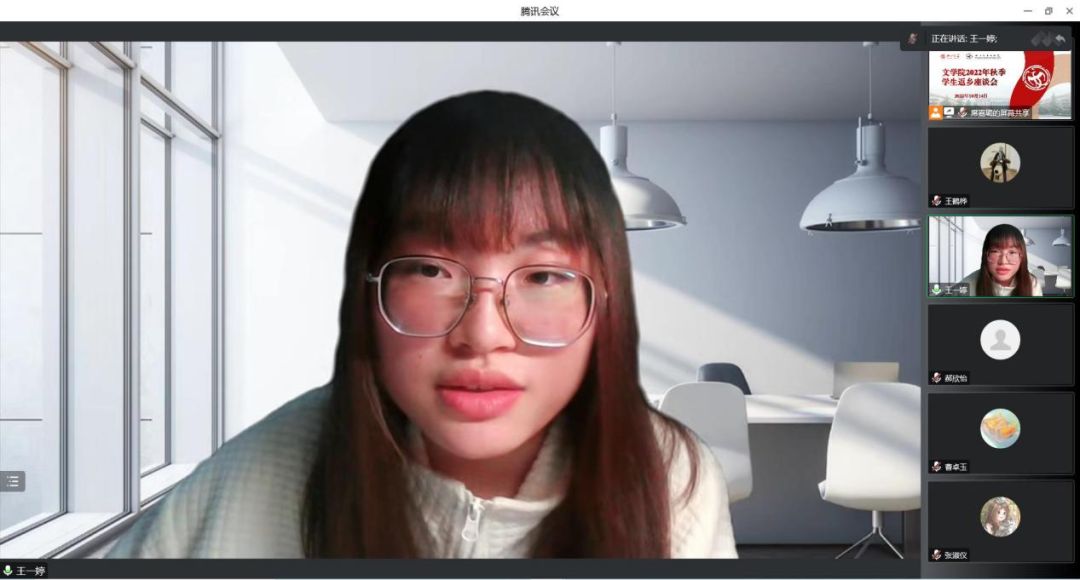 会上,同学们围绕暑期返乡的见闻进行了广泛交流,并就近期国际国内热点、社会民生问题、疫情常态化防控等问题进行了深入探讨。范旭颖同学向大家讲述了自己的“三下乡”社会实践经历和志愿服务经历,在这些具体的活动中,她更加明白了新时代青年应有的责任与担当;曹卓玉同学分享了疫情在校期间感受到的学校、学院的关怀,通过这些实例,进一步感受到学校是同学们的坚实后盾。