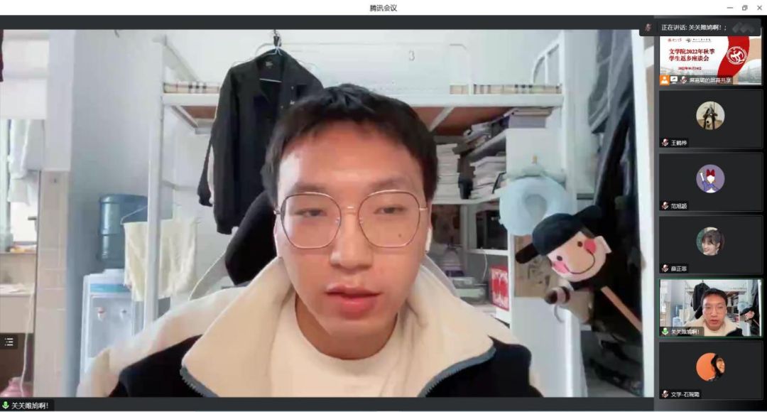 为进一步增进师生交流,帮助教师深入了解学生返乡后的思想状况,把握学生思想动态,同时畅通学生信息反馈渠道,常态化长效化推进党史学习教育“我为学生办实事”工作取得实效,10月14日下午,学院在线上召开了秋季学生返乡座谈会。院党委副书记陈柯,院长助理柯尊斌,院教务办公室、研究生工作办公室相关负责人,学院全体辅导员及本硕各年级学生代表共30人参加了座谈会。会议由院团委书记石琬璐主持。