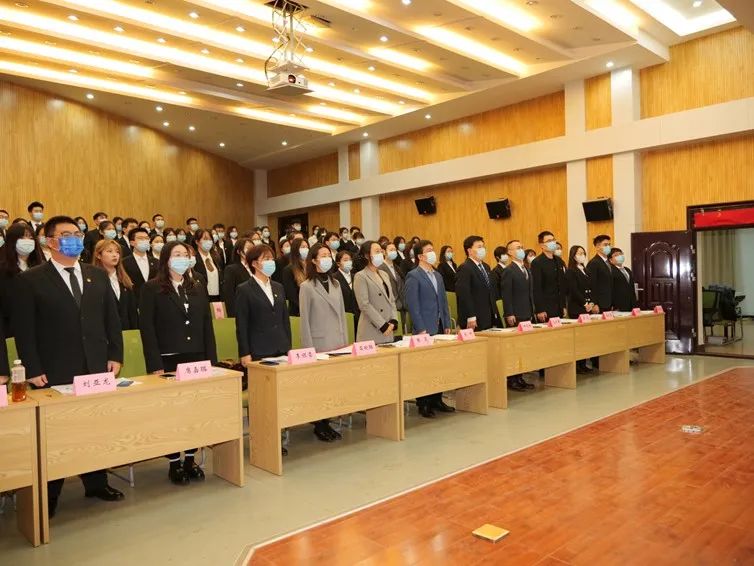 伴随庄严肃穆的国歌,大会拉开序幕。